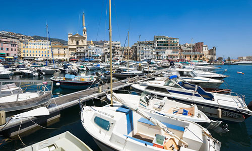 Cœur vivant de Bastia, il abrite des terrasses animées et des barques colorées.